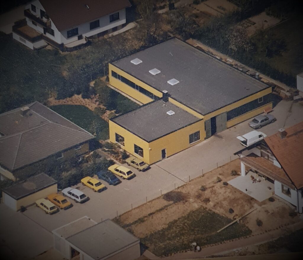 Umzug von Frankfurt nach Kronberg auf eigenen Grund und Boden! Platz für die Maschinen in der neuen geräumigen Werkhalle von 15 m x 25 m = 375m² am Feldrand „auf der grünen Wiese“.